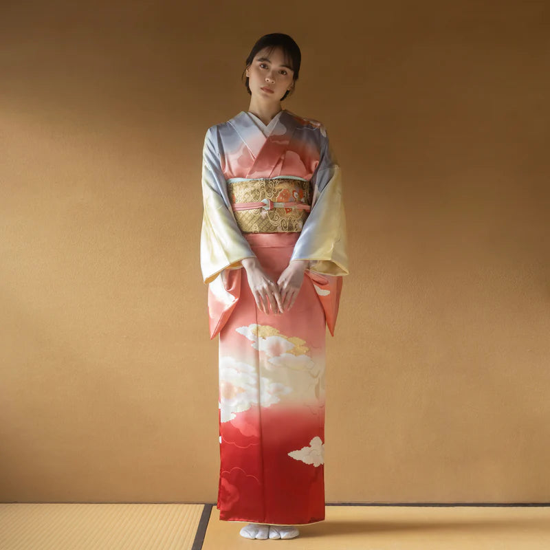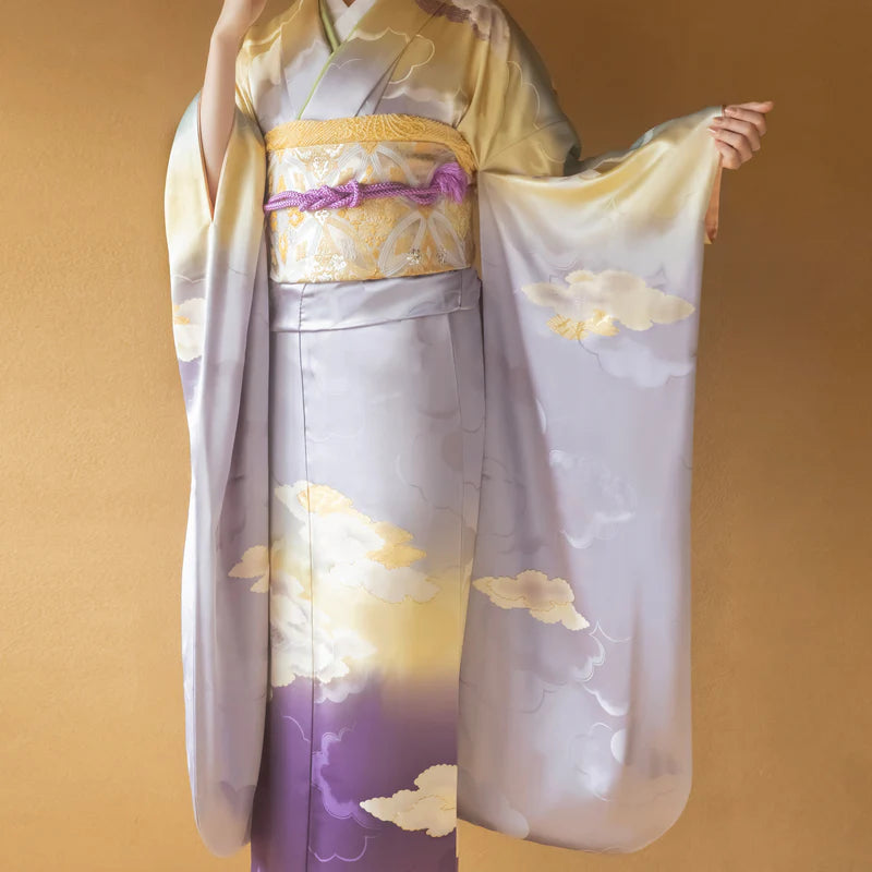 本アイテムは、振袖として着なくなった後に袖を切ることで、訪問着としても長く愛用いただけるタイムレスなデザインに仕上げました。お客様の寸法に合わせたオーダーメイドのお仕立てで、あなたの人生に寄り添う着物をお作りします。